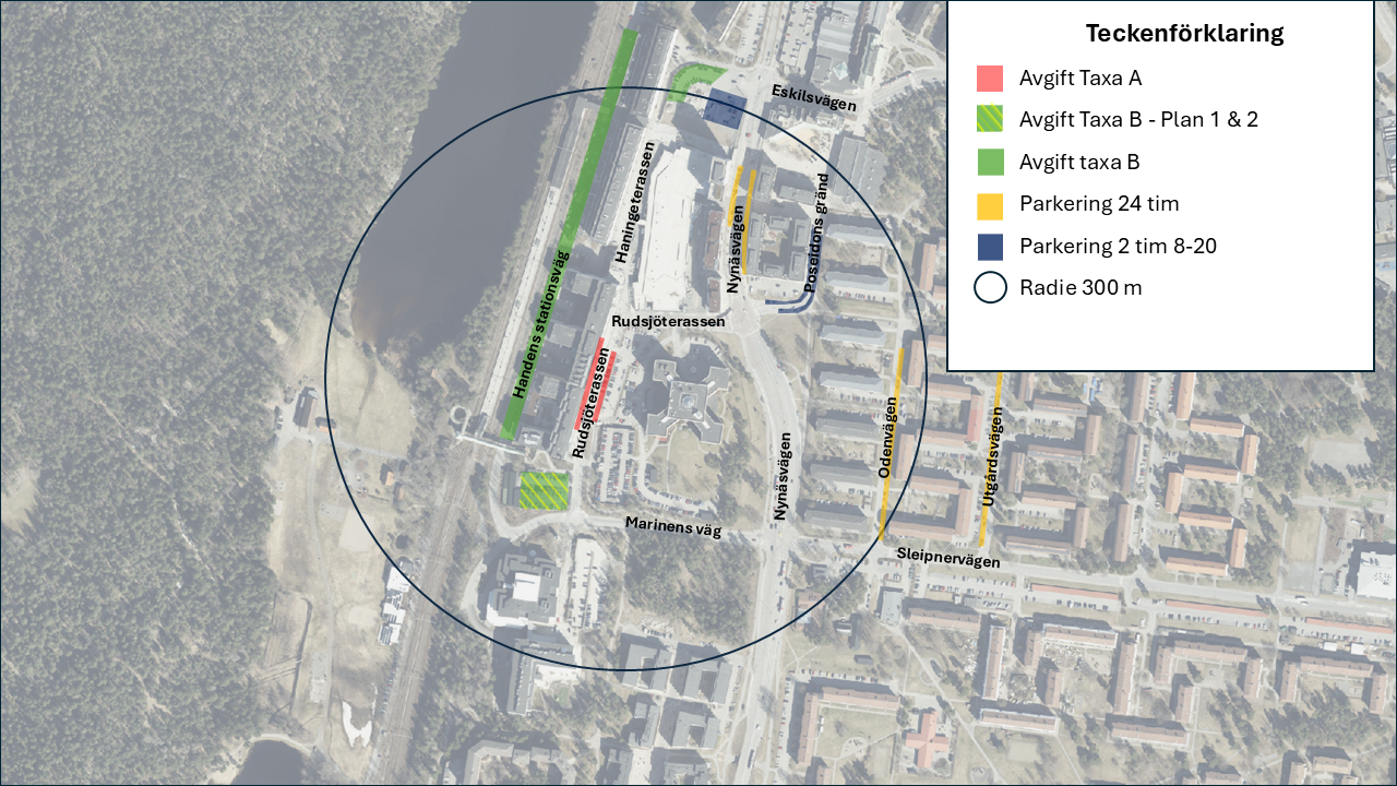 - Parkering – det bland annat i parkeringshus Rudsjöterrassen 11, som ligger lite längre söderut längs Rudsjöterrassen. Se karta över aktuella parkeringar i närområdet.