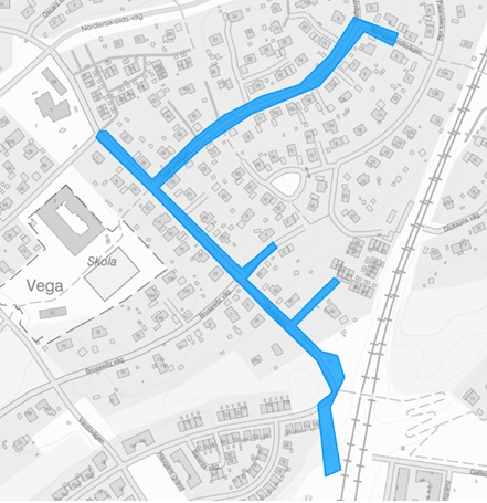 Arbeten pågår på Jökelvägen, Brusewitz väg och Tromsövägen. Inom kort förflyttas ena arbetslaget från Brusewitz väg till stigen mellan Jökelvägen 65 och 67.